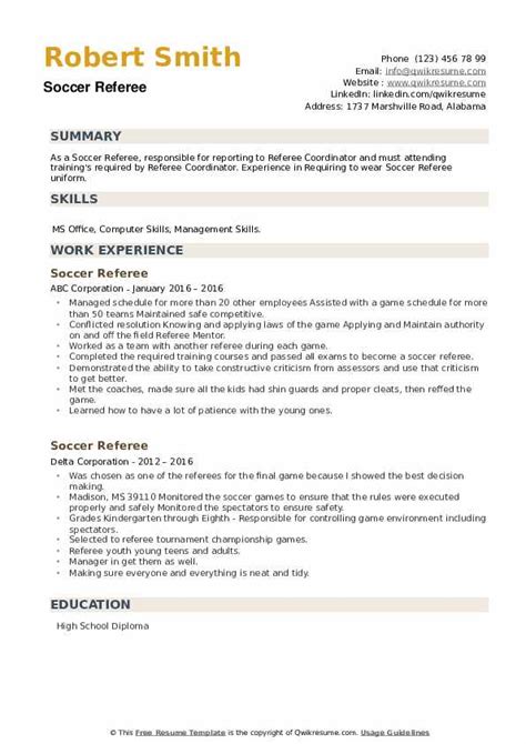 Download soccer referee resume example Hardcover